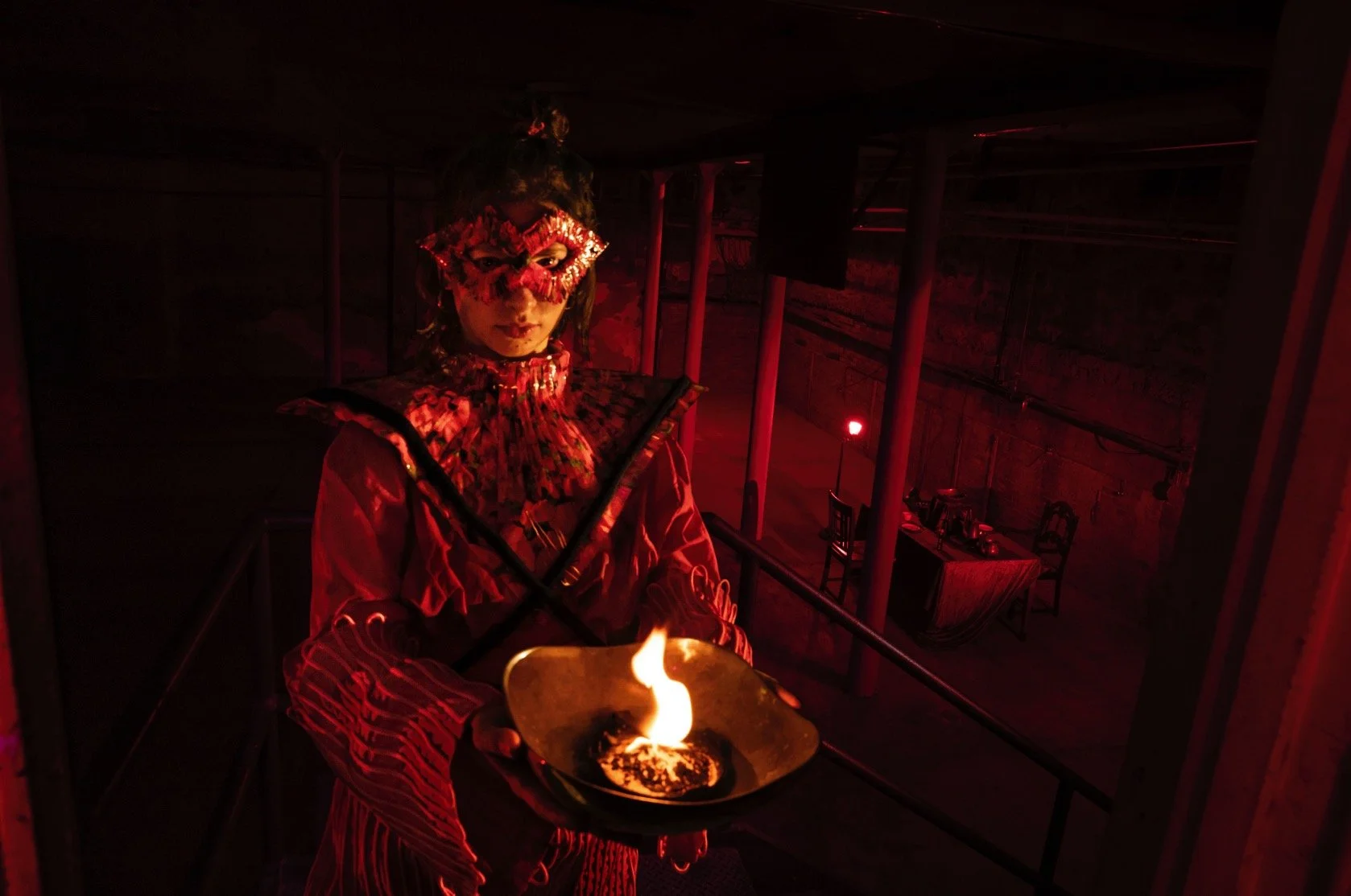 Our most recent performance, Bottom Of The Ocean, ran from 2021 through 2022. In BOTO, five visitors are led by three spirit guides through a surreal sequence of invented rituals. Through introspection, catharsis, and connection, the guests dive into the self toward an inevitable destination.