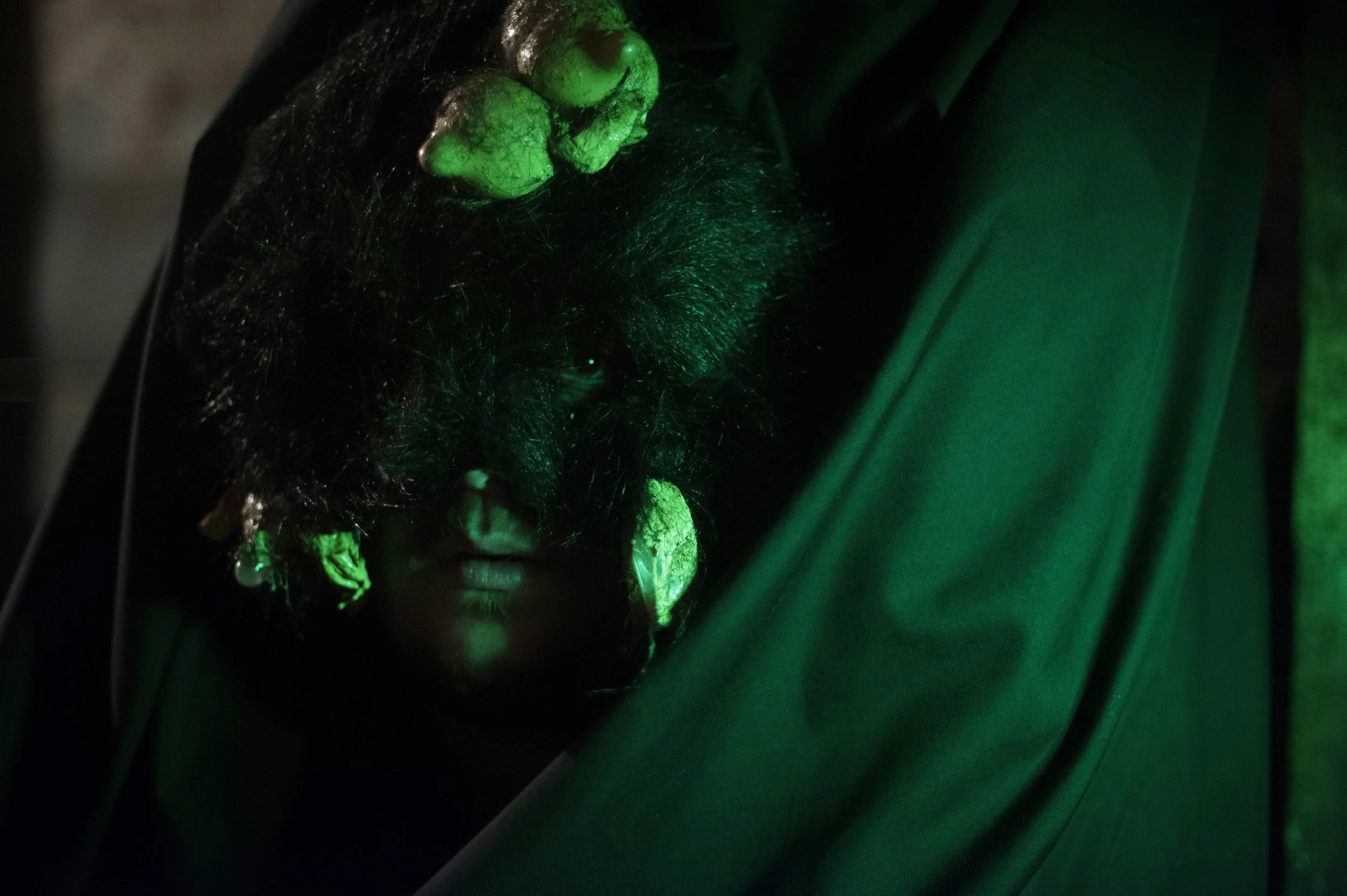 Two or three roles will be the most crew-like, the most out-of-world. These are the 1. Coat Check 2. Door Person 3. Bartender in the Entry Chamber. These three roles will exist alongside two thoroughly in-world characters, Dusk the Greeter and Anodyne the musician. These characters may end up being the ones who attend to Anodyne, adding (or taking away) their headdress and cape as the musical set transpires.