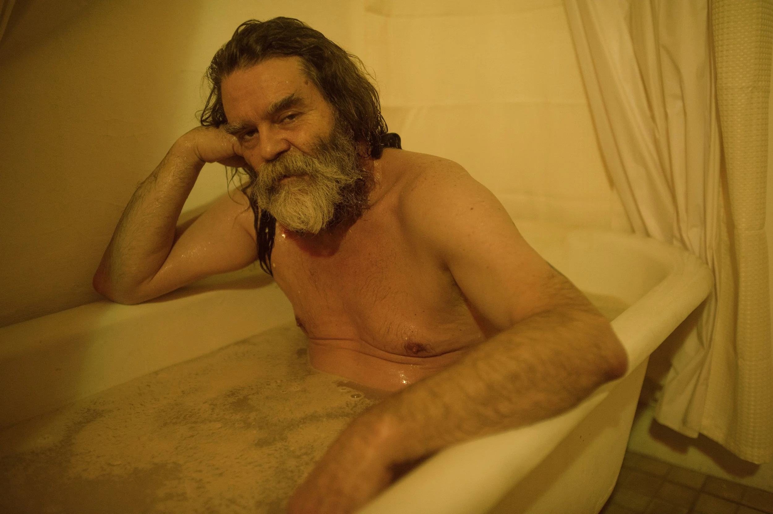 Olan will likely be frequently played by young actors (though maybe not all the time), but the young actors will dress up as if they are elderly, with white hair, etc. Olan is a sweet elderly photographer who slowly takes the portrait of guests while reveling in their beauty and speaks in their own old fashioned parlance.